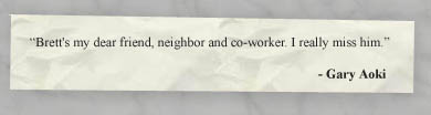 To all who knew him, Brett was engaging, interesting, caring, and thoughtful. He
